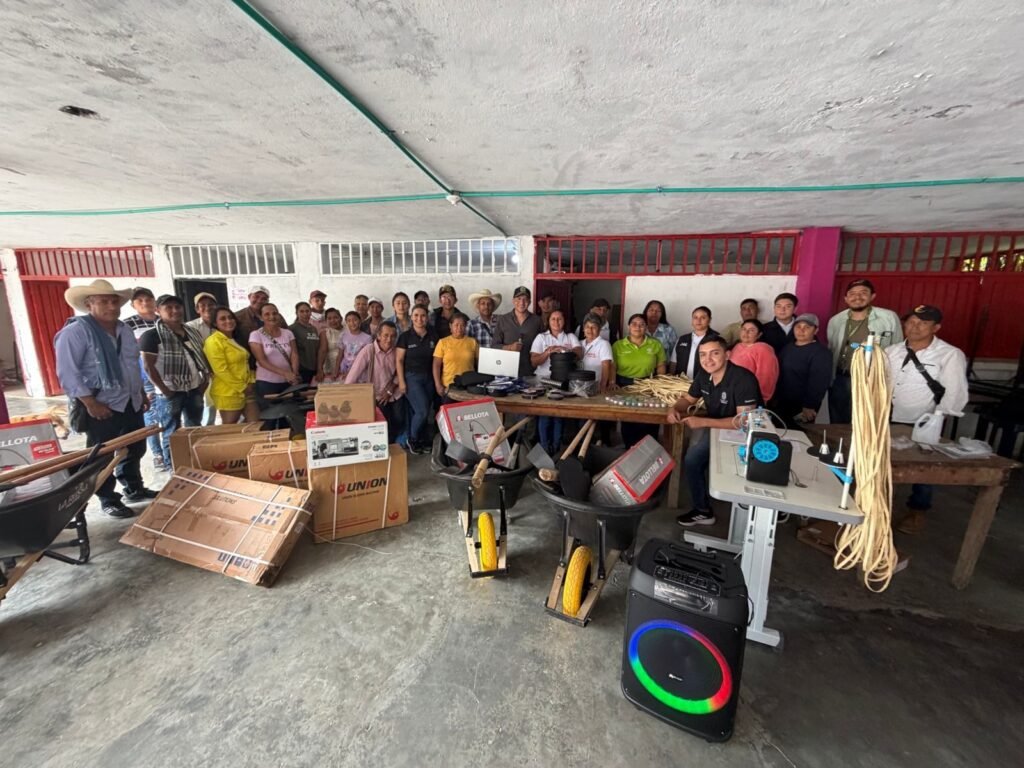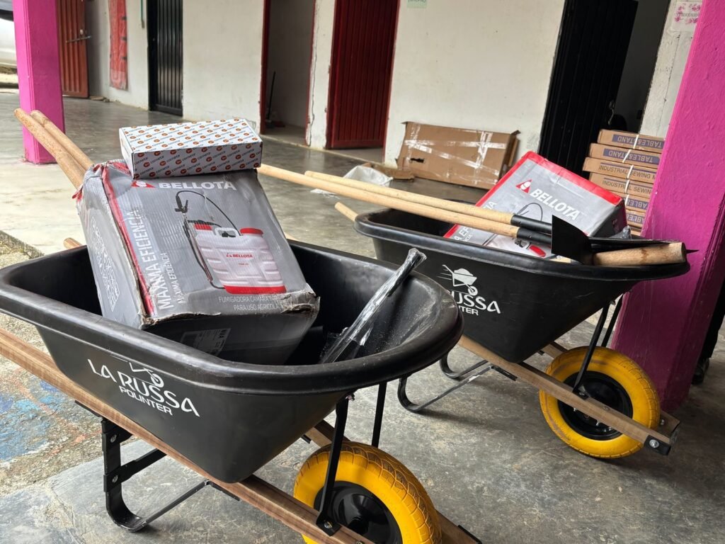 Asimismo, se entregaron fumigadoras manuales para labores de limpieza y mantenimiento de las áreas de recolección y tratamiento del pindo, zapapicos para la preparación del terreno y la extracción de la fibra, entre otras herramientas.